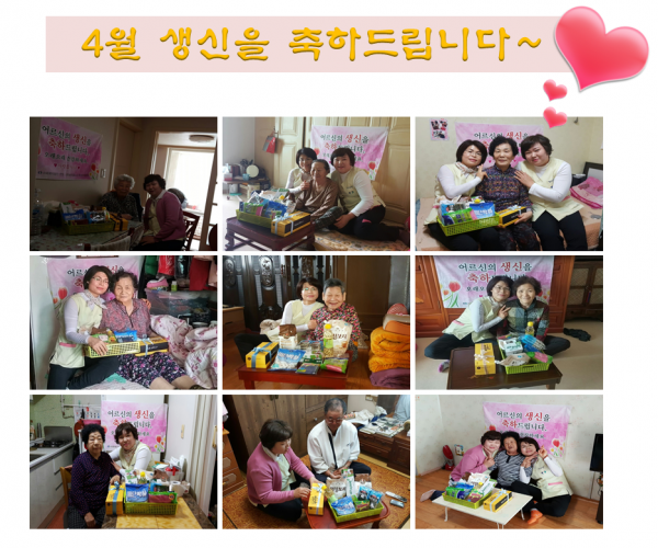* 4월생신을 축하드립니다 페이지 정보 작성자 웹마스터 댓글 0건 조회 3,027회 작성일 17-04-25 16:47 목록 본문 ❑ 일 시: 2017년 4월 ❑ 내 용: 4월에 생신을 맞이한 어르신댁을 방문하여 작은 생일파티를 해드림. 생신선물로는 롤케익과 일상생활에 필요한 다양한 물품( 식용유, 밀가루, 주방세제, 수세미, 고무장갑, 섬유유연제, 고급지퍼팩, 사각조미김, 식초)을 전달해 드림. 추천49