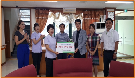 ❑ 내 용 : 한국토지주택공사노동조합은 노동조합창립 제29주년을 기념하여 임원진3명이 하늘마음노인통합지원센터에 방문, 사랑의 기부금 200만원을 전달하고 “지역사회에 조금이나마 보탬이 되고자 하였으며, 앞으로도 전 임직원이 앞장서서 지역 나눔 봉사에 참여하는 기회가 되었으면 좋겠다.”라고 밝혔습니다. 이번 복지후원금은 재가어르신을 위해 소중하게 사용하겠습니다. 감사합니다.