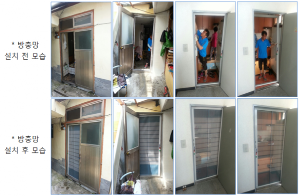 방충망 설치로 인하여 폭염예방과 주거환경개선과 사생활 보호 등의 효과가 나타났습니다.