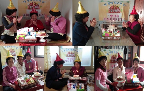□ 내 용 : 11월 생신을 맞이한 여러 어르신에게 생신서비스를 실시하여 소중한 시간을 가졌습니다. 처음으로 생신서비스를 받은 어르신은 너무 감동스럽다고 하시며 눈물을 보였습니다.