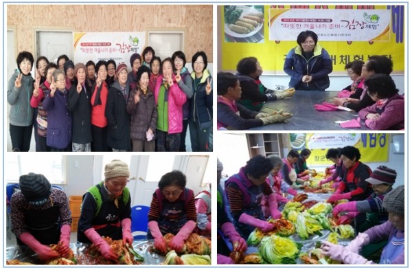 * 내 용 : 명석면 신기리에 위치한 장군농장에서 겨울나기 준비로 김장체험 활동을 실시하였습니다. 배추에 양념을 고루 발라 김치를 만들고, 참석하지 못하고, 김치가 필요한 어르신들께 나누어 줄 김치까지 만들었어요. 따끈한 떡국으로 점심식사를 하고, 즐겁고 행복한 나눔의 시간이 되었습니다.