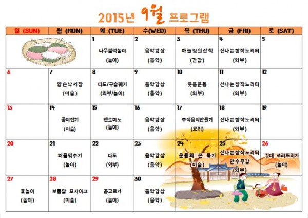 가을하늘처럼 투명하고, 가을햇살처럼 따뜻하게! - 2015년 9월 프로그램 일정 페이지 정보 작성자 웹마스터 댓글 0건 조회 2,817회 작성일 15-09-03 18:52 목록 본문 가을하늘처럼 투명하고, 가을햇살처럼 따뜻한 한 달이 되길 바라며 보름달 처럼 풍성한 우리 진주요양원의 9월 프로그램 일정을 소개합니다. 추천200