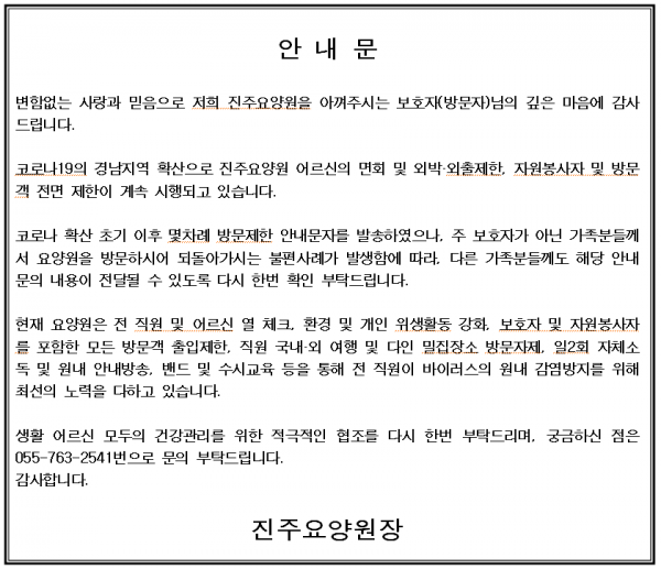*코로나19 보호자(방문자) 감염예방을 위한 협조 안내문 페이지 정보 작성자 웹마스터 댓글 0건 조회 5,348회 작성일 20-02-27 11:26 목록 본문 코로나19 보호자(방문자) 감염예방을 위한 협조 안내문 추천12