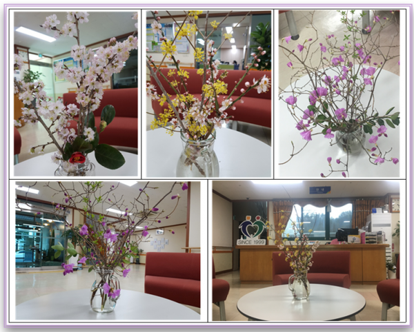 □ 내 용 : 코로나19예방 활동으로 매일 마스크를 착용하고 어르신 목욕, 케어, 프로그램은 물론 위생활동강화로 늘어난 업무를 완수하시느라 우리 선생님들께서 고생이 많으십니다. 평소보다 더 조심히 최선을 다해 어르신 모시고, 개인적으로도 걱정이 더욱 많은 요즘이지만, 봄꽃이 우리 곁에 왔습니다. 하늘마음센터 선생님들께서 진주요양원 선생님들께 주시는 봄선물들 감사합니다. 어려움이 있어도 지금처럼 함께 힘을 합하고 서로 안아주면 위기를 극복해 나갈 수 있다는 힘이 생깁니다. 감사합니다. 사랑합니다.