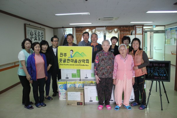 진주돗골한마음산악회 사랑나눔 후원물품 전달 페이지 정보 작성자 웹마스터 댓글 0건 조회 4,523회 작성일 17-05-12 16:36 목록 본문 2017.05.04.(목) 진주돗골한마음산악회에서 우리 요양원에 방문하셔서 선풍기와 휴지, 간식을 전달해 주셨습니다. 어르신들과 함께 시원한 여름을 날 수 있도록 관심과 사랑 보내주셔서 감사합니다. 추천149