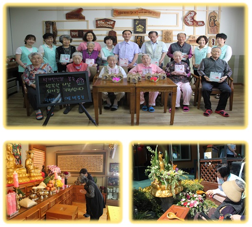 2017년 5월 3일(수) 용호정사와 여래암을 방문하여 종교적 의미를 벗어나 모두가 함께 석가탄신일을 기념하여 부처님께 불공을 드리고, 기관에서 자주 접할 수 없었던 사찰음식을 맛보며, 사찰에서 실시되는 신나는 장기자랑을 구경하는 등 즐거운 시간 보내셨습니다.