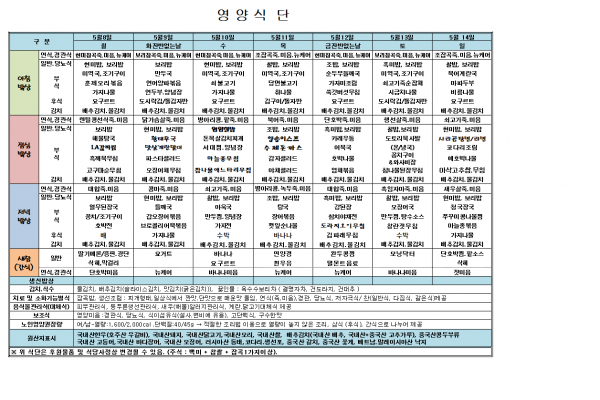 5월2주 식단표