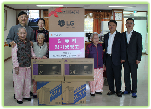 아름다운 동행 - ‘김일석 대표’ 후원물품전달 페이지 정보 작성자 웹마스터 댓글 0건 조회 4,998회 작성일 17-04-07 17:32 목록 본문 EXR스포츠센타 김일석 대표는 2017. 4. 4 (화) 진주요양원을 방문하여 어르신의 생활지원 봉사활동의 시간을 가진 후 급식운영에 필요한 김치냉장고와 사무용 컴퓨터 후원(4백여만원상당)을 통해 지역사회 나눔을 실천하는 아름다운 동행에 참여하였습니다. 추천139