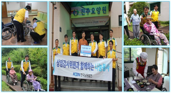 ‘한국남동발전(주)’ 봉사활동 및 후원금 전달 페이지 정보 작성자 웹마스터 댓글 0건 조회 4,961회 작성일 16-06-14 19:03 목록 본문 2016년 6월 14일(화) 한국남동발전(주) 감사실(상임감사위원: 김낙규)의 나눔봉사단 8명이 우리원을 방문하여 후원금 전달과 함께 식사배식 및 휠체어 수선 등의 특별 봉사활동을 실시하였습니다. 사회공헌활동에 앞장서 따뜻한 관심과 손길을 보내주신 나눔봉사단께 다시 한 번 감사드리며, 귀중한 후원금은 생활어르신을 위해 소중히 사용토록 하겠습니다. 추천187