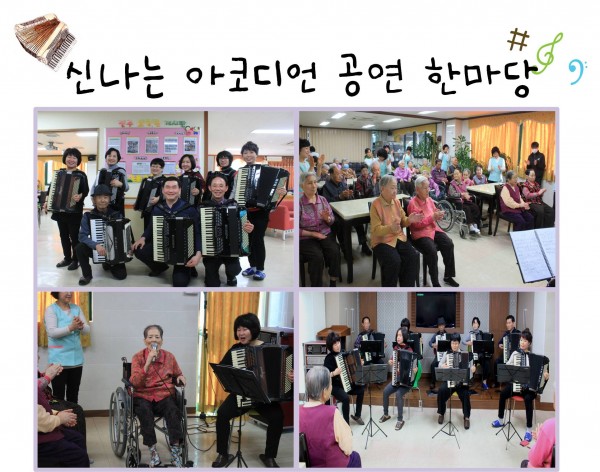 신나는 아코디언 공연 한마당 페이지 정보 작성자 웹마스터 댓글 0건 조회 4,916회 작성일 16-02-26 17:14 목록 본문 2016년 2월 24일(화) ‘미라클동호회’에서 동요, 대중가요 등 다양한 장르의 아코디언 연주와 노래공연으로 어르신들께 수준 높은 문화공연을 제공해 주셨습니다. 추운날씨에도 불구하고 즐거운 공연을 선사해 주셔서 감사드립니다. 추천212